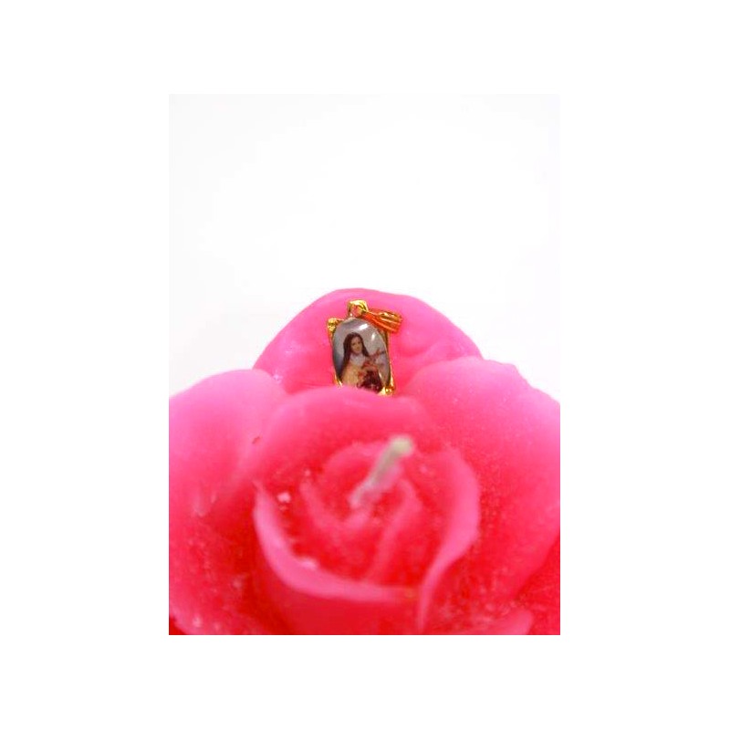 Rose Kerze - Fuchsia - Medaille der Heiligen Theresa