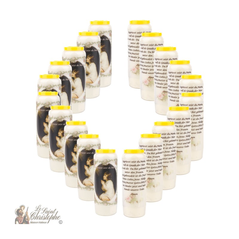 (20 neutrale Novenakerzen und 20 Aufkleber werden in der Box sein)