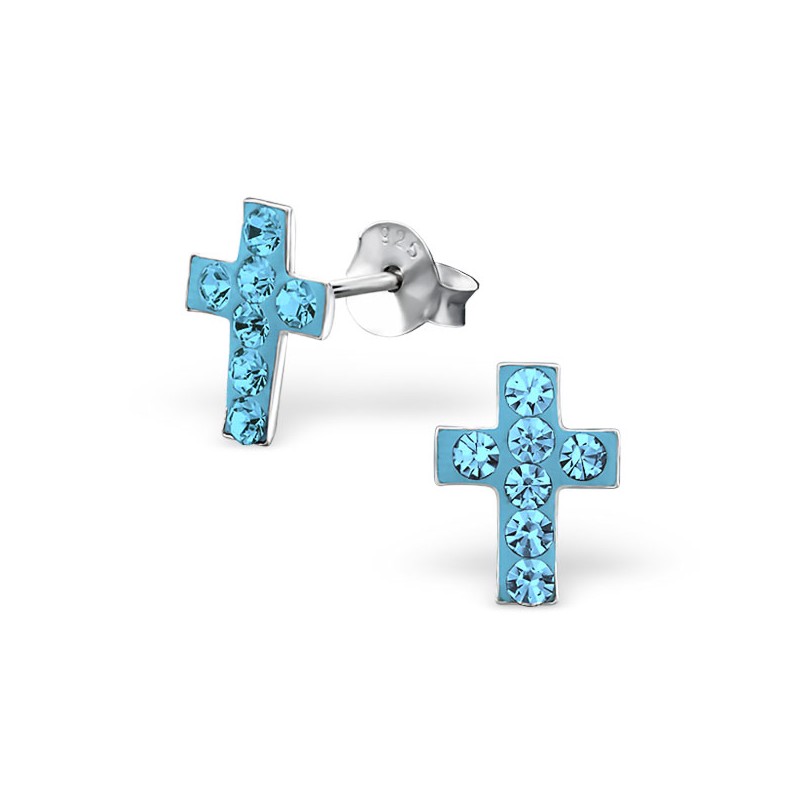 Ohrringe kreuz Blue Kristall. Maße: 7 x 9 mm - Glas: 14 Zimmer - silber 925 - Gewicht: 0.5gr - Artikelnummer : 16490