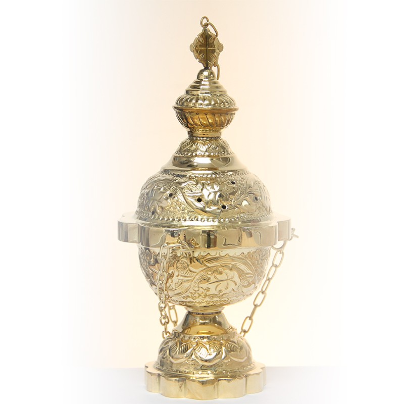 Räucherfaß geschnitzt mit Glocken - 25 cm