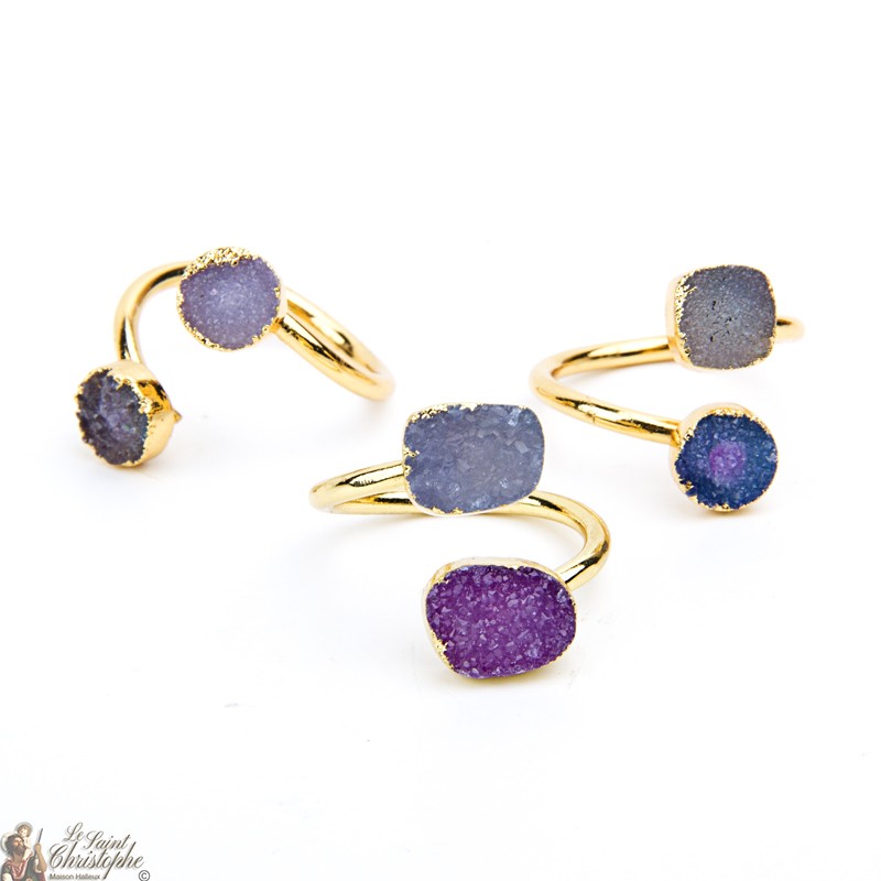 Verstellbarer Ring in vergoldet mit zwei Steinen in Druzy Achat.