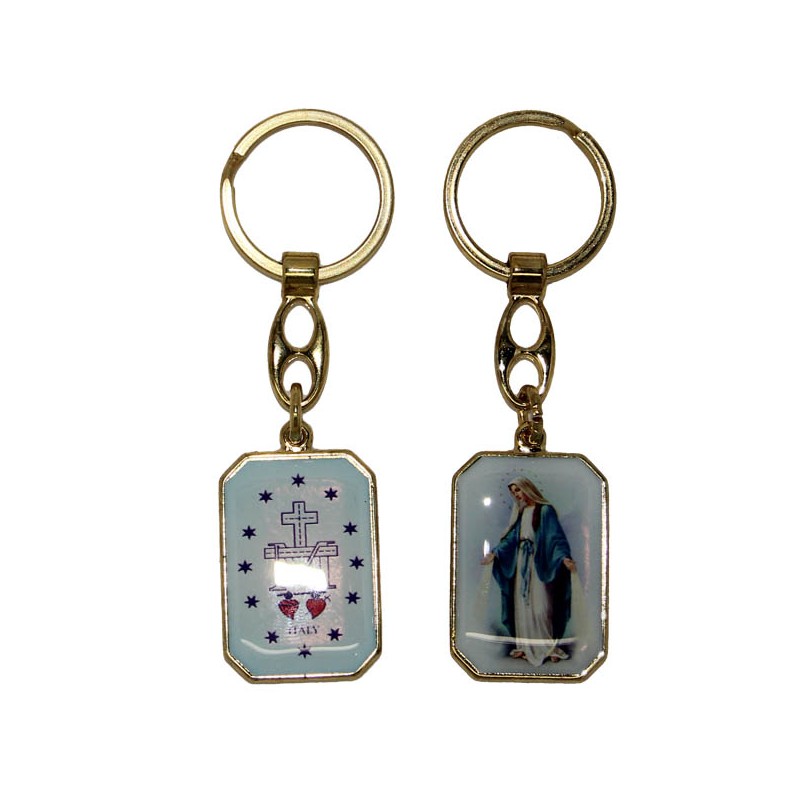 Schlüsselring der wundertätigen Jungfrau - rechteckig blau - golden