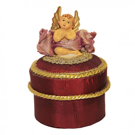 red burgundy box with little angel in terracotta.This box is made entirely by hand by the artisan Philippines.Diameter: 9.5 cmHeight: 14 cmWeight: 150gItems code: 09965-round