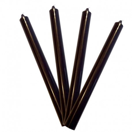 Box of 48 packages of 4 black colored candles in the mass MH. 25 cm high, they do not give off perfume or smoke and do not drip.Burning time: about 8 hours.