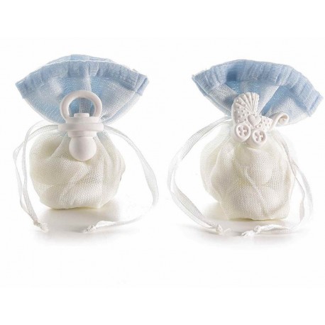 Cloth pouches with plaster decoration suitable for baptism, birthMeasures: 6.5 x 9.3 cmMaterial: Polyester