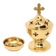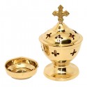 Censer copper, beautiful finish in 3 parts, cover, inner container for coal, and base with carved cross.