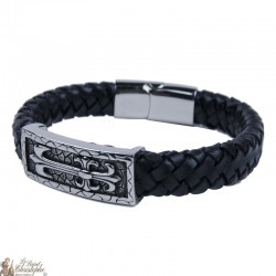 silver plated metal bracelet with brown cross