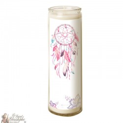 Candle in a solid glass container, which can burn for 168 hours, or an equivalent duration of 7 days. The paraffin, colored in all its mass, flows inside the container, giving a photophore effect during combustion, the flame shining through the thin layer of wax. The candle can be used for the simple pleasure of decoration or for more spiritual uses such as prayer, meditation or esotericism.