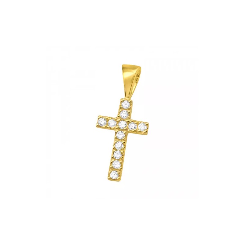 925 gold plated silver pendant in the shape of a cross and encrusted with crystals. An elegant and shiny jewel!