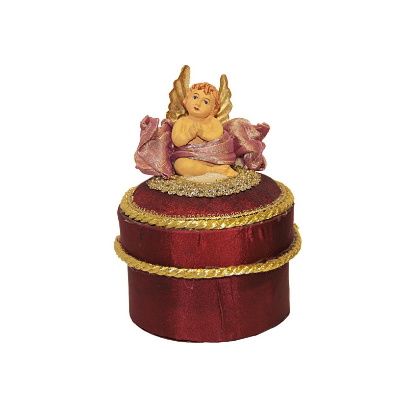 red burgundy box with little angel in terracotta.This box is made entirely by hand by the artisan Philippines.Diameter: 9.5 cmHeight: 14 cmWeight: 150gItems code: 09965-round
