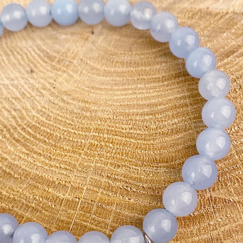 This natural blue jade elastic bracelet is a delightful and luminous touch to wear on your wrist.