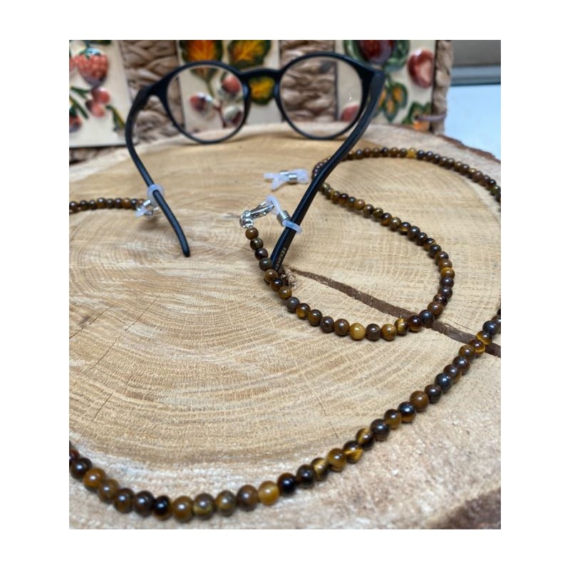 This cord for glasses is a chic and practical accessory. Practical to keep your glasses on you without having to wear them, chic thanks to the tiger eye beads, a fine stone renowned in lithotherapy for its virtues.