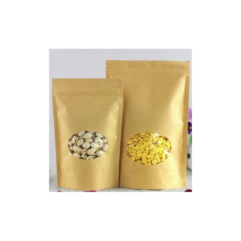 Kraft bag with window and zip closure
