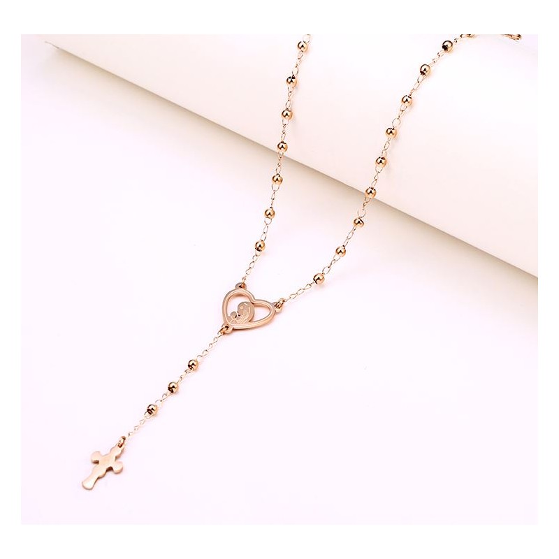 Stainless steel rosary - pink gold color