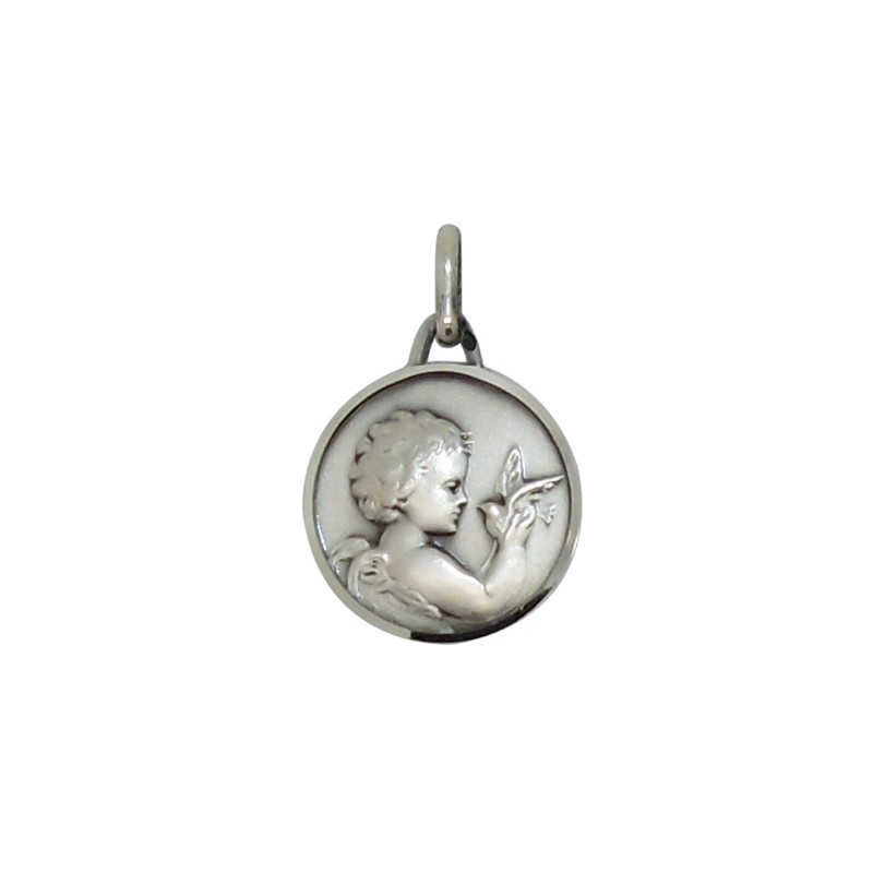 Pretty medal with small Angel and dove in silver 925. Diameter: 18mm Weight: 2.6gr Code: 10912
