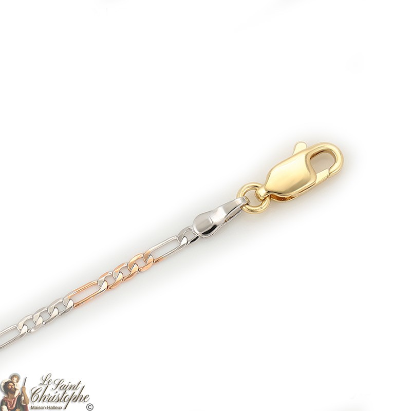 Cadena Figaro con eslabones de oro, oro rosa y plata 60 cm
