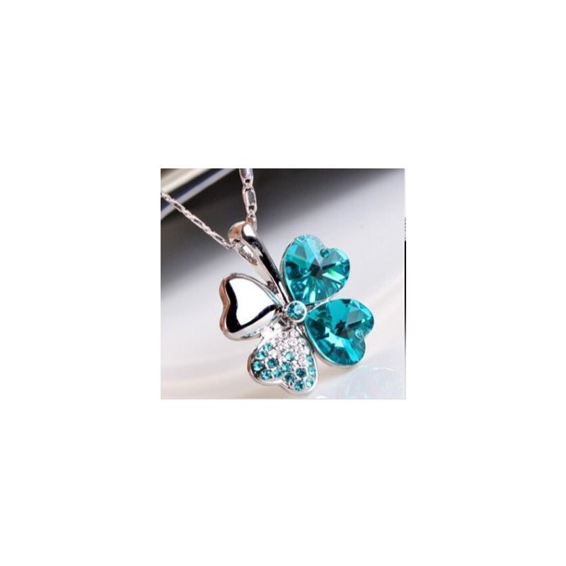 Collar trébol de cristal azul - 2,1 x 2,6 cm