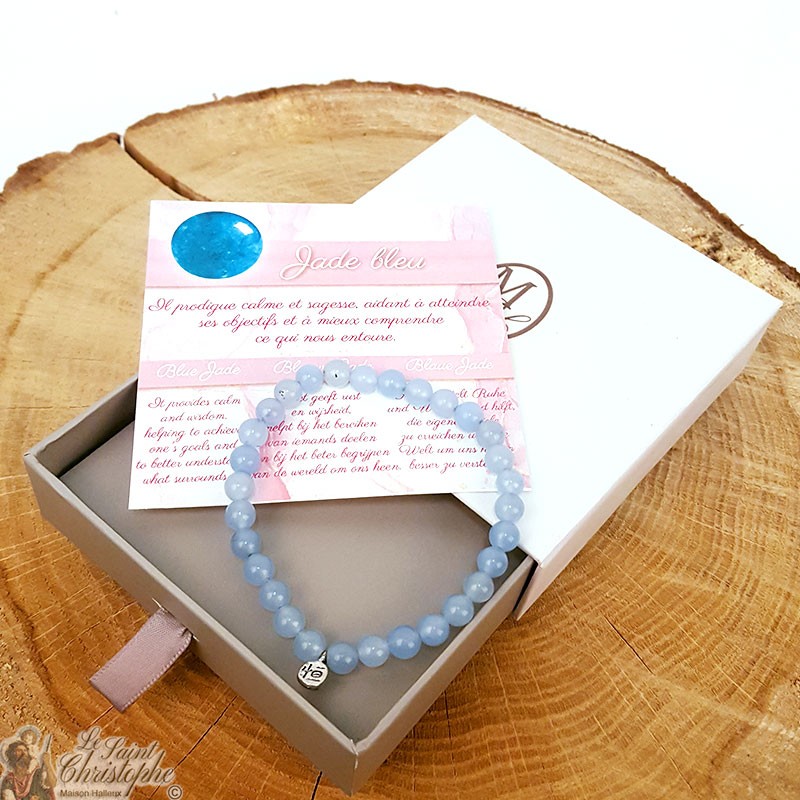 De un azul claro y translúcido con puntos a veces más pronunciados, el jade azul es una piedra de calma y sabiduría que, por estas dos cualidades principales, ayuda a alcanzar sus objetivos, a comprender su entorno, atenuando el estrés y la ansiedad. Para mantener la motivación y la determinación. Piedra de la comunicación, el jade azul también tiene un efecto sobre los oídos y los ojos, ya que está vinculado al chakra de la garganta.