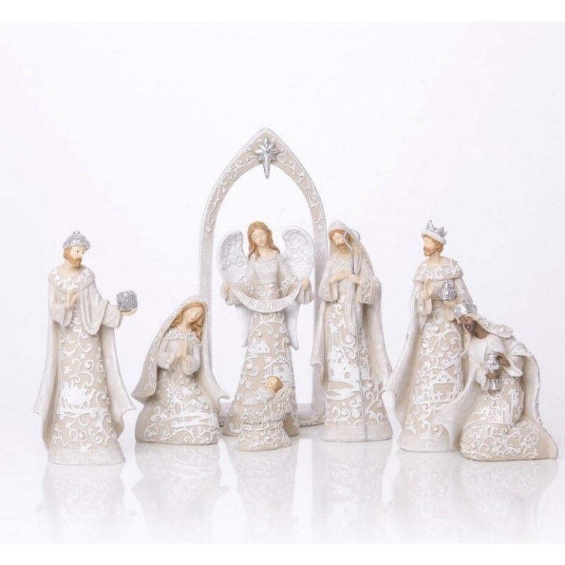 Pesebre de Navidad moderno de resina - 7 piezas