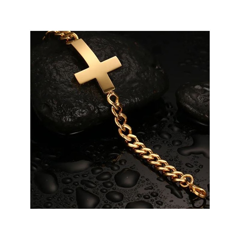 Pulsera de hombre con cruz en acero inoxidable chapado en oro