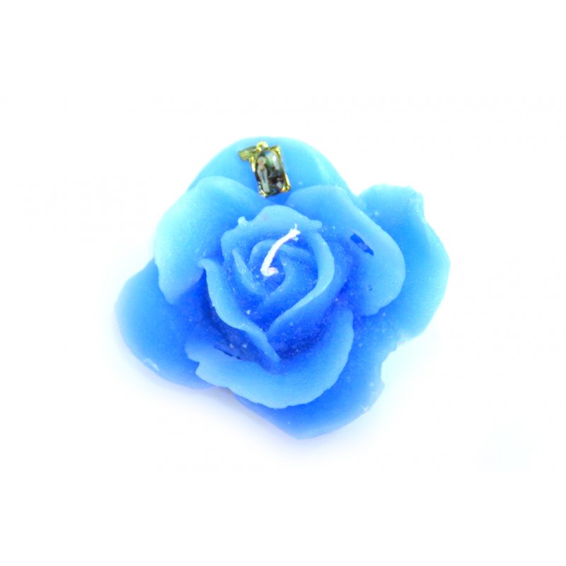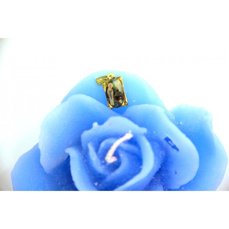 Vela en forma de rosa con medalla de la Virgen de Banneux