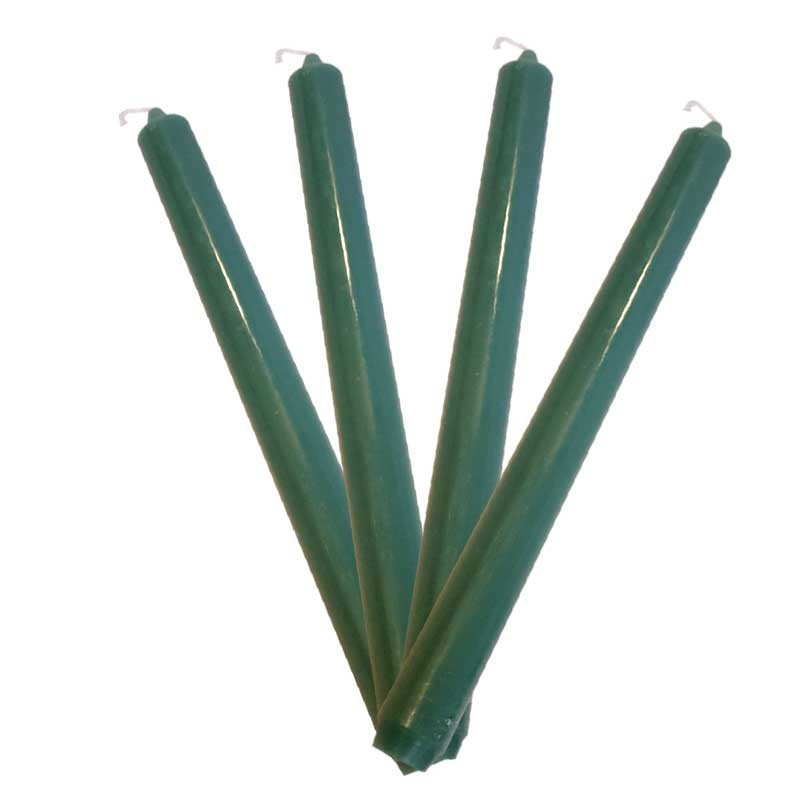 Caja de 48 paquetes de 4 velas de colores en la masa verde helecho MH. 25 cm de altura, no desprenden fragancia ni humo y no gotean.