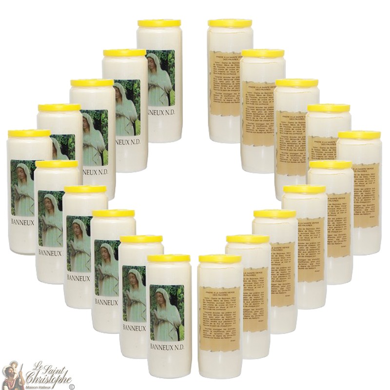 (20 velas de novena neutras y 20 pegatinas estarán en la caja)