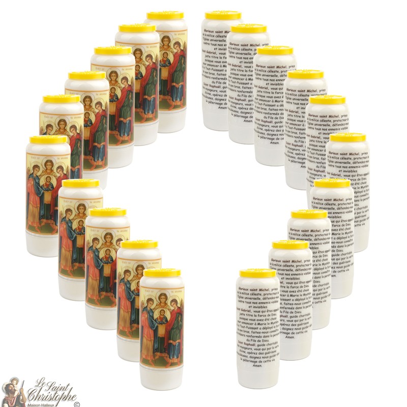 (20 velas de novena neutras y 20 pegatinas estarán en la caja)