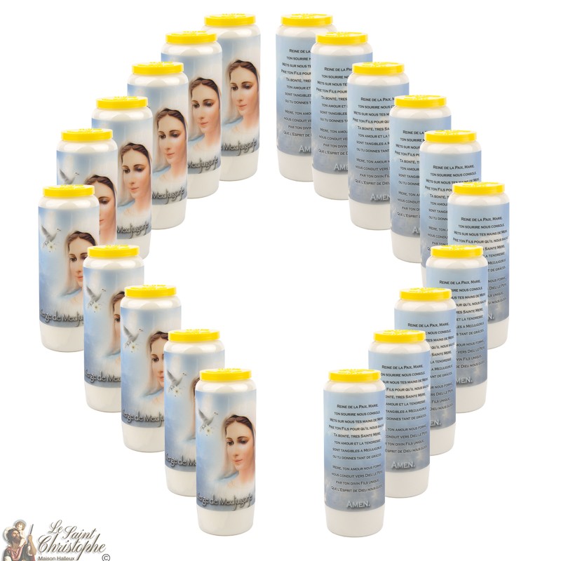(20 velas de novena neutras y 20 pegatinas estarán en la caja)