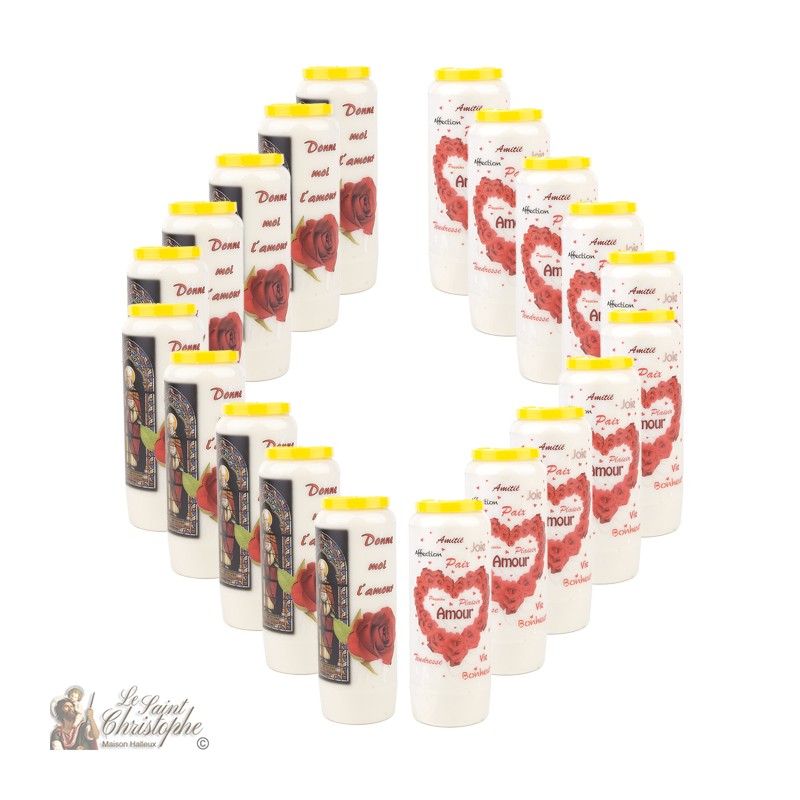 (20 velas de novena neutras y 20 pegatinas estarán en la caja)