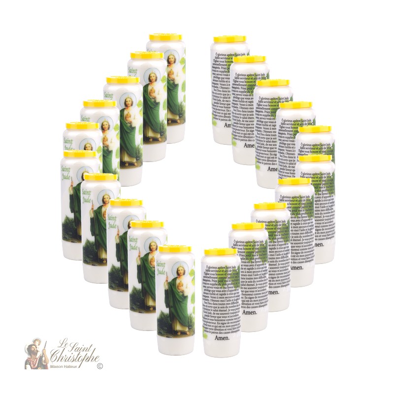 (20 velas de novena neutras y 20 pegatinas estarán en la caja)