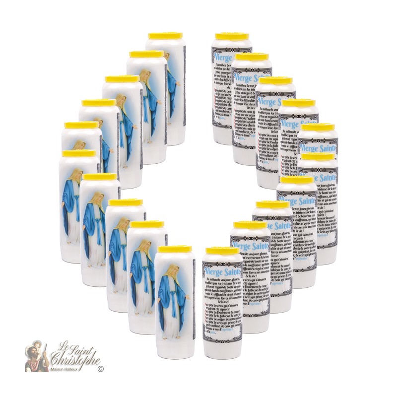 (20 velas de novena neutras y 20 pegatinas estarán en la caja)