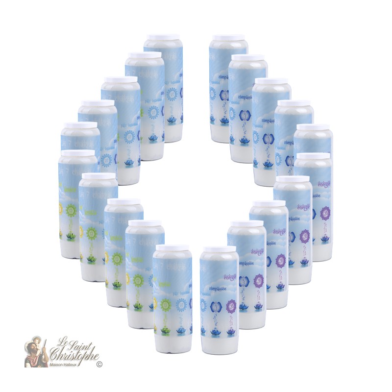 (20 velas de novena neutras y 20 pegatinas estarán en la caja)
