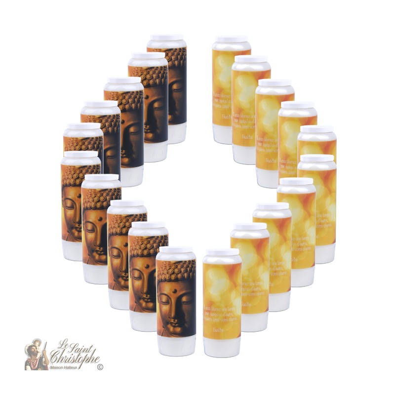 (20 velas de novena neutras y 20 pegatinas estarán en la caja)