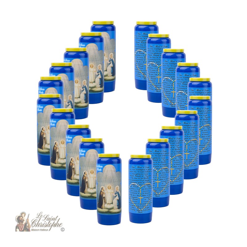 (20 velas de novena neutras y 20 pegatinas estarán en la caja)