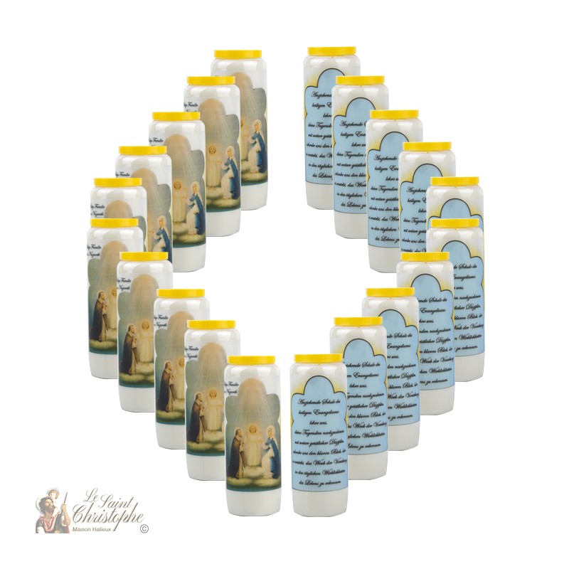 (20 velas de novena neutras y 20 pegatinas estarán en la caja)