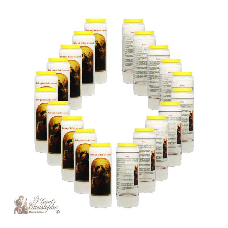 (20 velas de novena neutras y 20 pegatinas estarán en la caja)