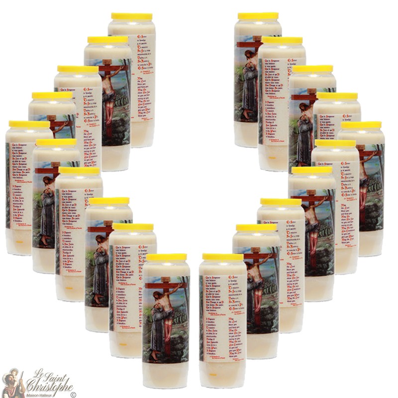 (20 velas de novena neutras y 20 pegatinas estarán en la caja)