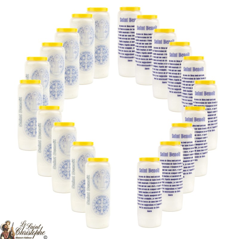 (20 velas de novena neutras y 20 pegatinas estarán en la caja)