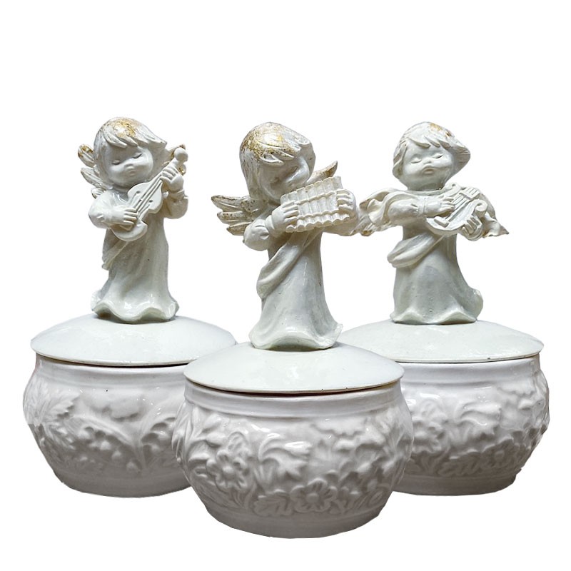 Bonbonnières en céramique anglaise anges musiciens - 3 pièces