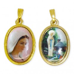 Parure pendentif et boucles d'oreilles Vierge Miraculeuse - plaqué or 24 k