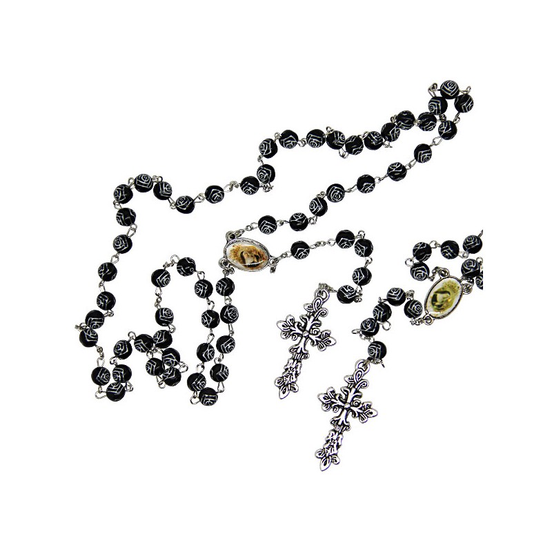 Chapelet de Sainte Rita, perles en forme de roses noires.