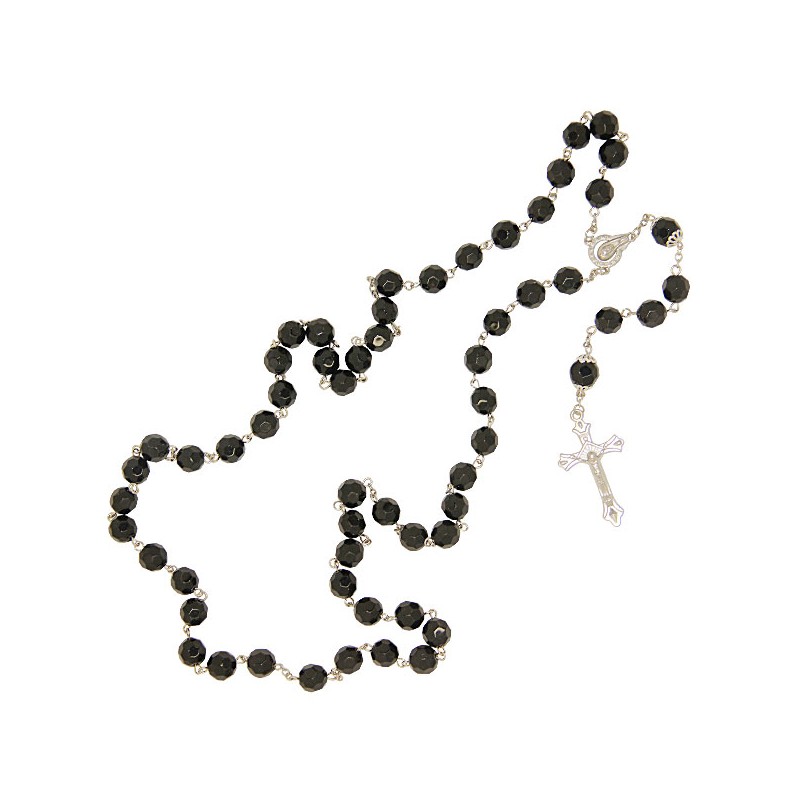 Chapelet noir, perles en verre