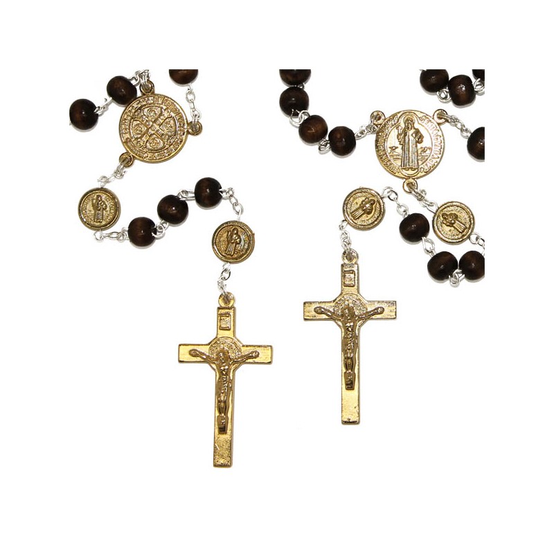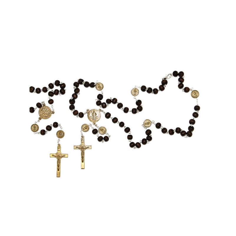Chapelet Saint Benoît - brun - doré - fermeture chaîne.
