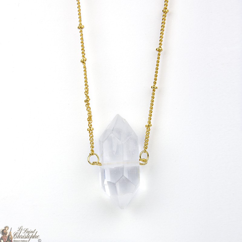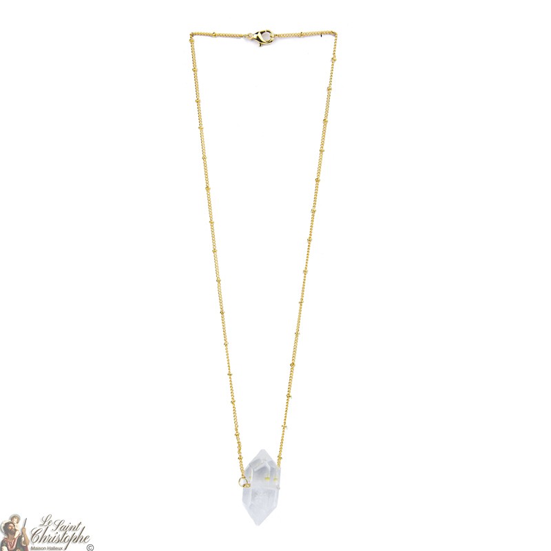 Collier avec jolie chaîne en plaqué or et un pendentif en quartz.