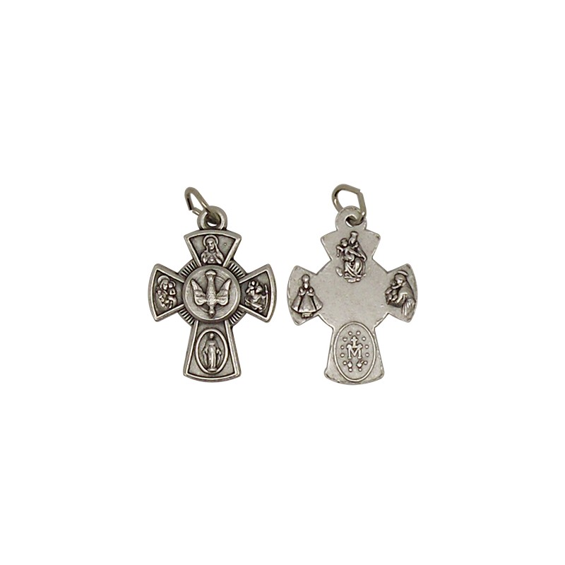 Croix avec le Saint Esprit et les Saints ( St Jospeh , Sacré coeur de Jésus , Sacré coeur de Marie , St antoine , Scapulaire , médaille Miraculeuse ) .