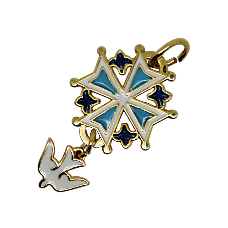 Croix Huguenote plaqué or colorée bleu , blanc .