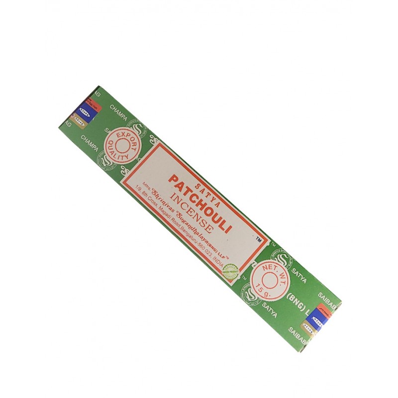 Encens naturel à brûler, roulé sur bâton de bambou à la main. L'encens Patchouli de la marque Satya a un parfum chaud et boisé. Il est utilisé pour purifier et apporter une ambiance relaxante.
