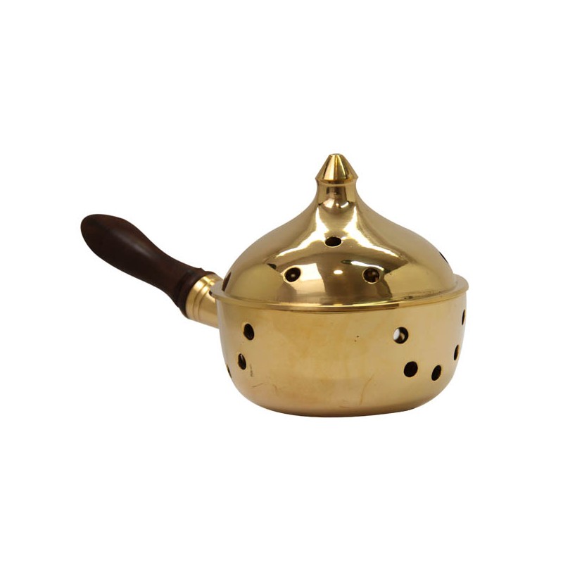 Encensoir à main en cuivre et poignée en bois, réalisé entièrement à la main.