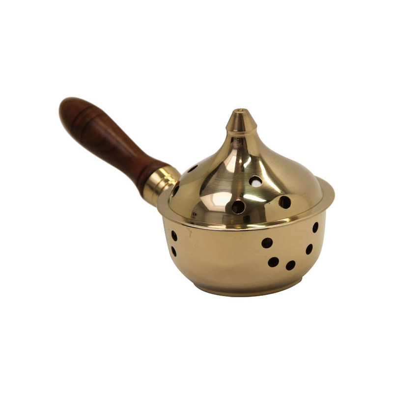 Encensoir à main en cuivre et poignée en bois, réalisé entièrement à la main.